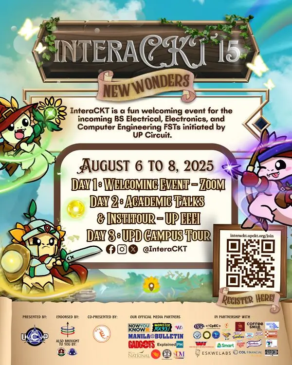 From August 6 to 8, 2025, UP Circuit will hold InteraCKT 15: New Wonders, a three-day welcome event for incoming Electronics, Electrical, and Computer Engineering freshies, shiftees, and transferees. Now on its fifteenth iteration, InteraCKT helps transition to college life by providing a fun and supportive space to meet new people, learn useful tips, and get a feel of life in EEE beyond what classrooms alone can offer.
