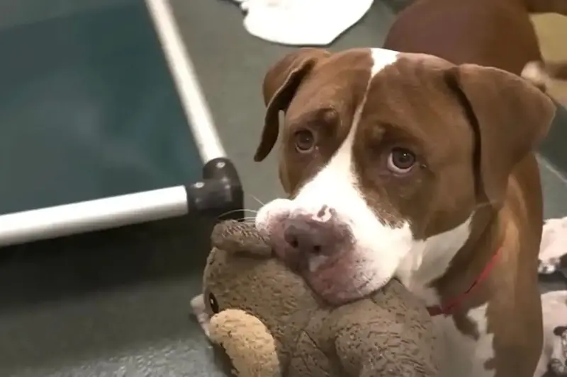 Peanut spread joy by offering her plush toys to anyone who approached her kennel, staff said. She would even take one on potty breaks.
