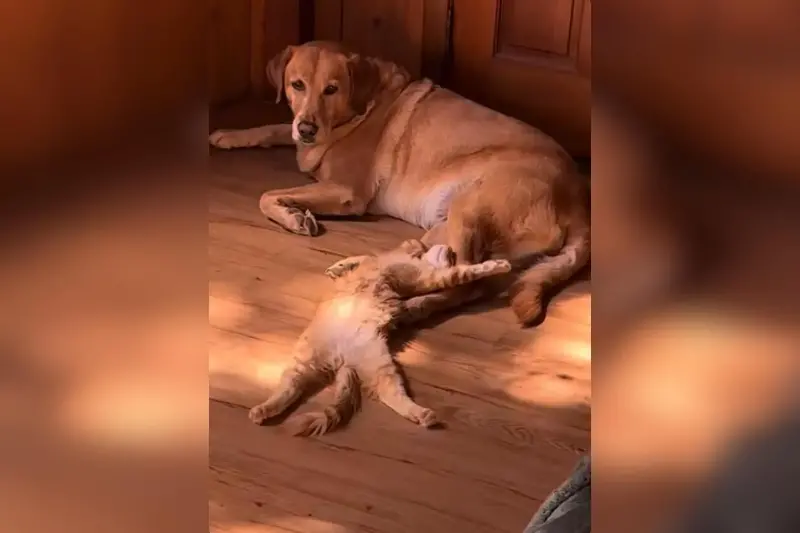 Carroll loves seeing how their bond has developed, and how much Mango has grown in confidence since taking him in. She couldn't resist sharing a video of the cat on TikTok (@tess.carroll1) showing Mango sleeping like a starfish while leaning on the dog (who was cuddle trapped as a result).