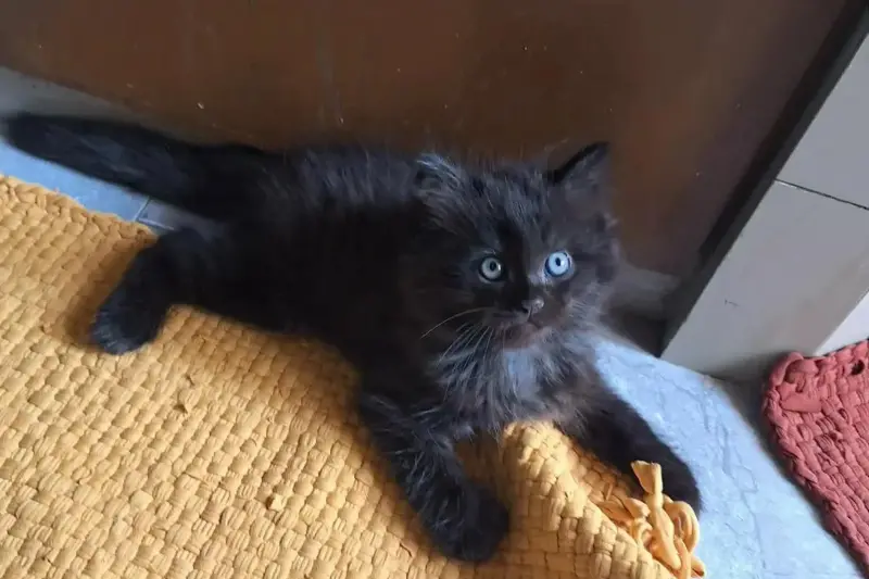 A photo of the kitten—black with striking blue eyes—was shared by a user identified as u/kishi045 under the title: “Mom left to buy groceries… came back 3 hours later with a cat instead.”