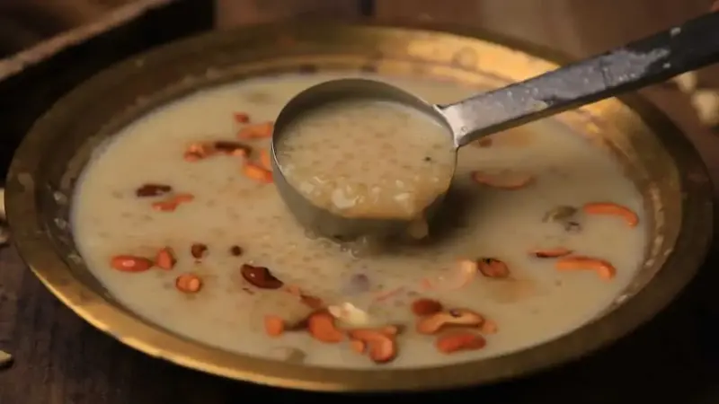 Phirnis are a popular dessert, but here we swap the rice for sabudana. You have to cook sabudana for quite a long time until the milk reduces and becomes thick. The milk will be flavoured with cardamom, and a nice creamy smoothness to it, with the sabudana having a nice chewy quality to it. Typically served chilled, this dessert is perfect for special occasions and festivals. Its subtle taste and mouthfeel make it a good treat that people of all ages can enjoy.