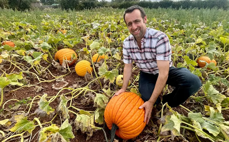 Josh Warren, from Warren’s Fruit Farm in Draycott, Somerset, has hundreds of pumpkins that are ready to be harvested two months before their peak season.